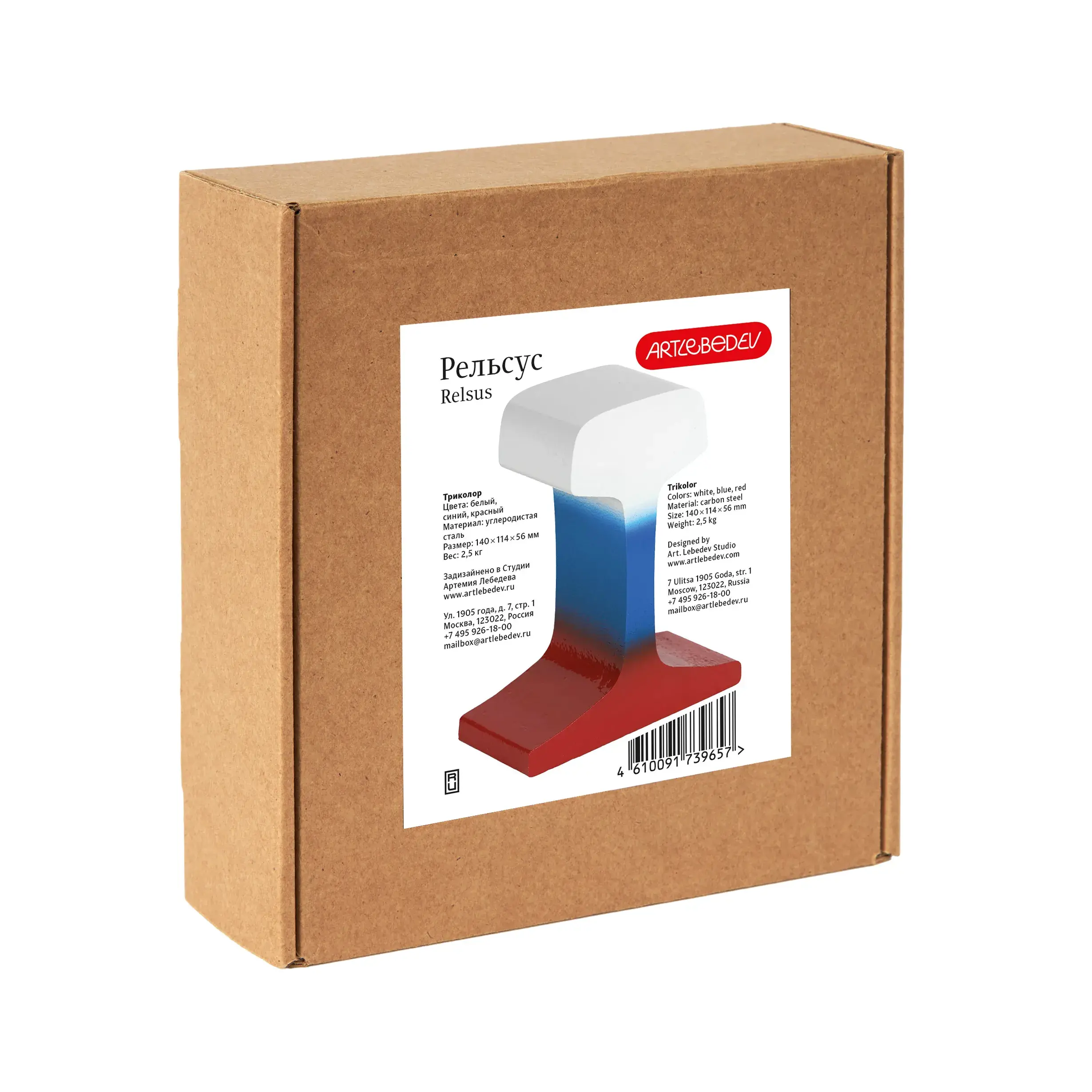 Исключительный и неповторимый «Рельсус триколор» окрашен в цвета российского флага. Патриотичный предмет и внимание привлекает, и в быту помогает: придавливает бумаги, подпирает книги и держит двери.