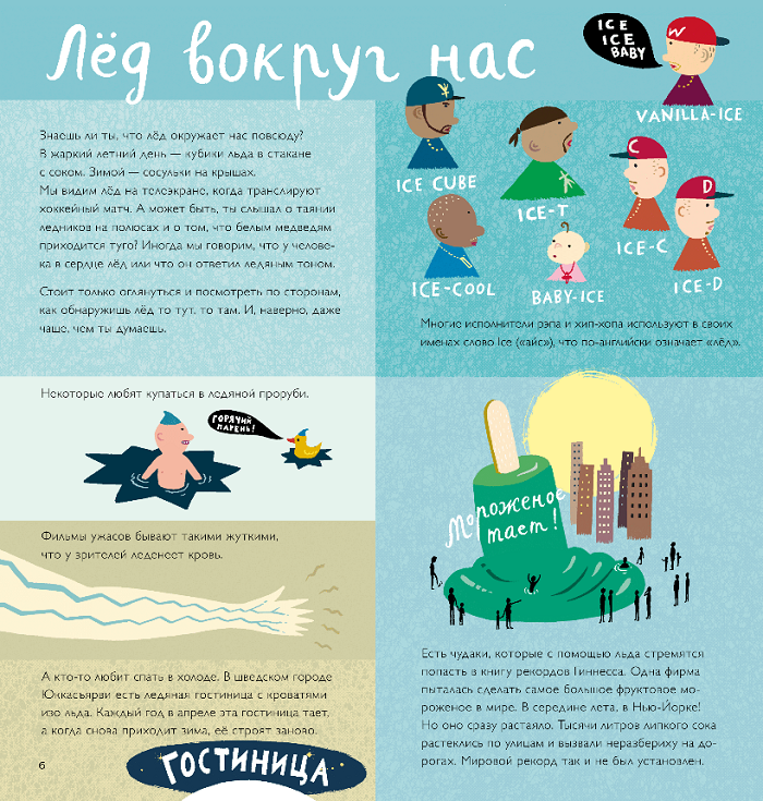 Все знают, что лед — это замерзшая вода, он холодный, а в тепле тает. Но со льдом связана еще куча интересных вещей! Например, когда придумали холодильник? Почему лед мычит, как корова? Как замерзает текучая вода? Какие животные зимуют во льду? И кто он такой — таинственный Ледяной Человек?